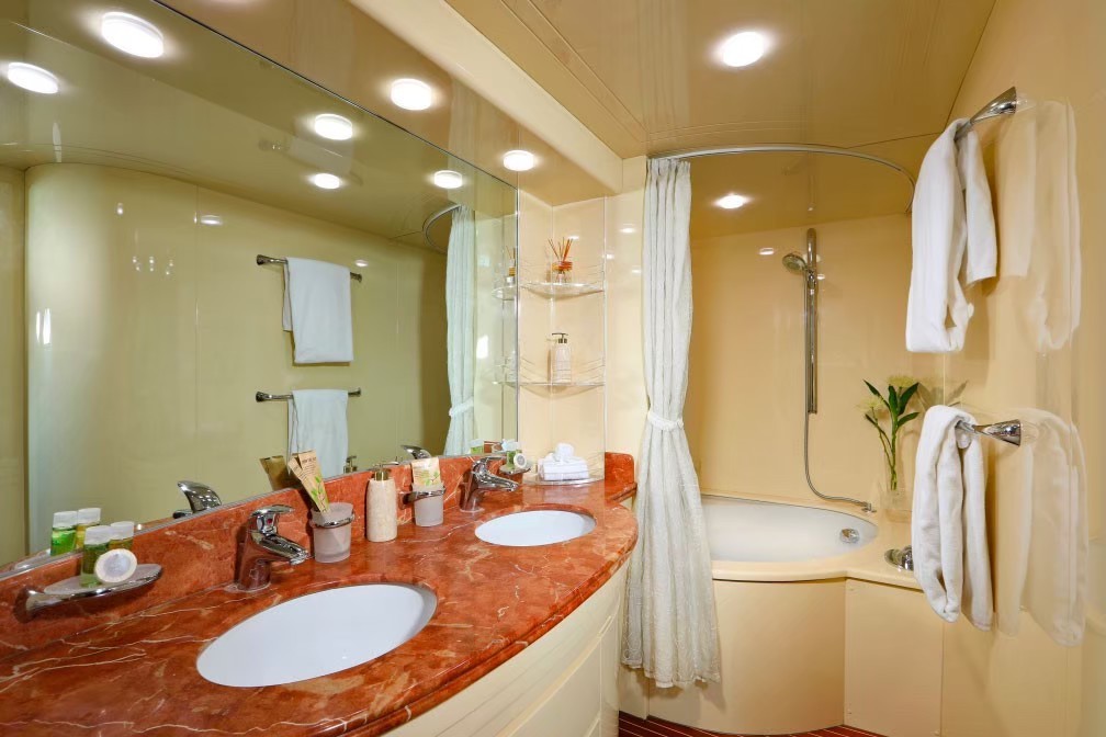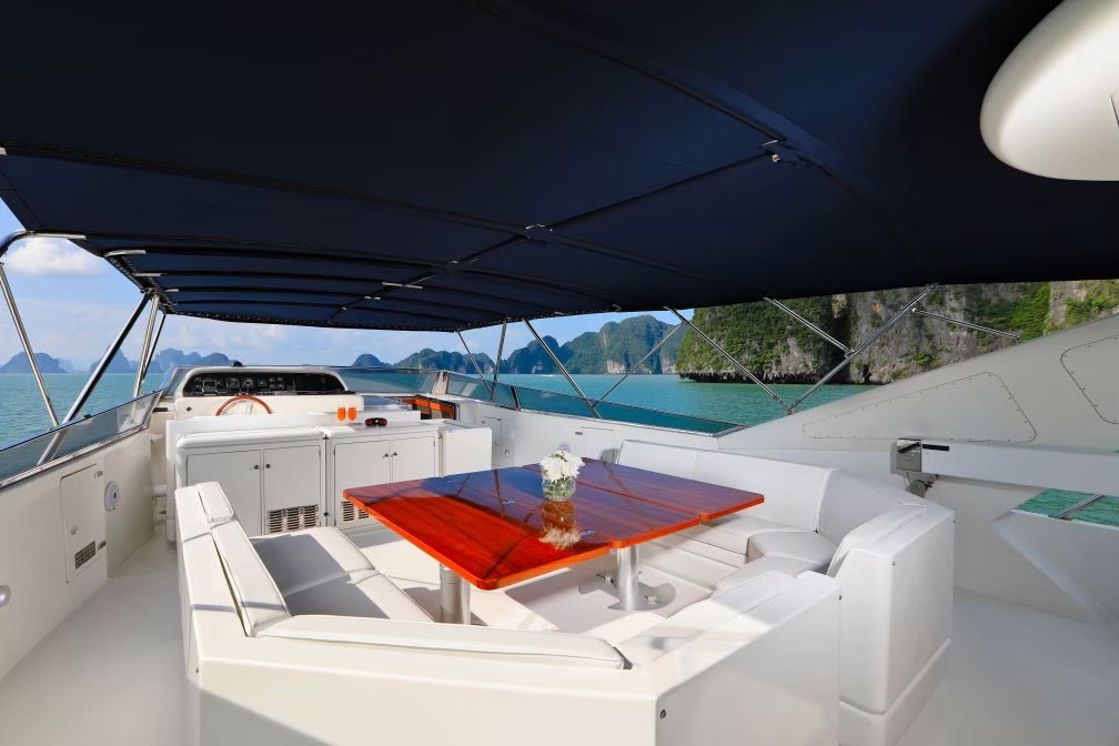 Our luxury motor yacht is capable of a comfortable cruising speed of 17 knots. Cruising in upmost comfort and explore the unparalleled beauty of the Andaman Sea. Her top speed is 25 knots and her power comes from two 2280.0hp MTU 12V396TE94 diesel engines.