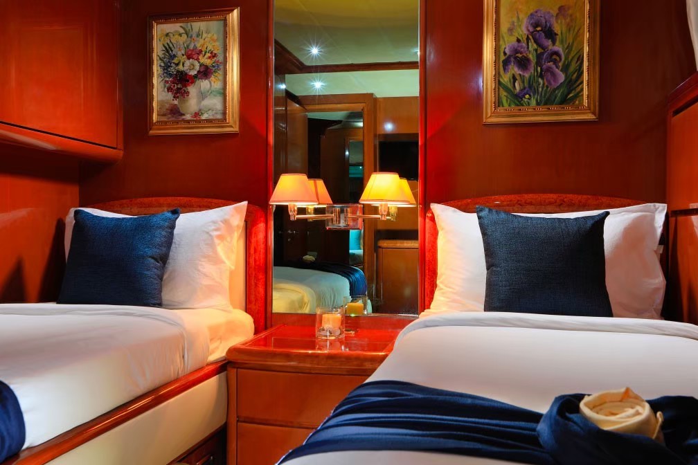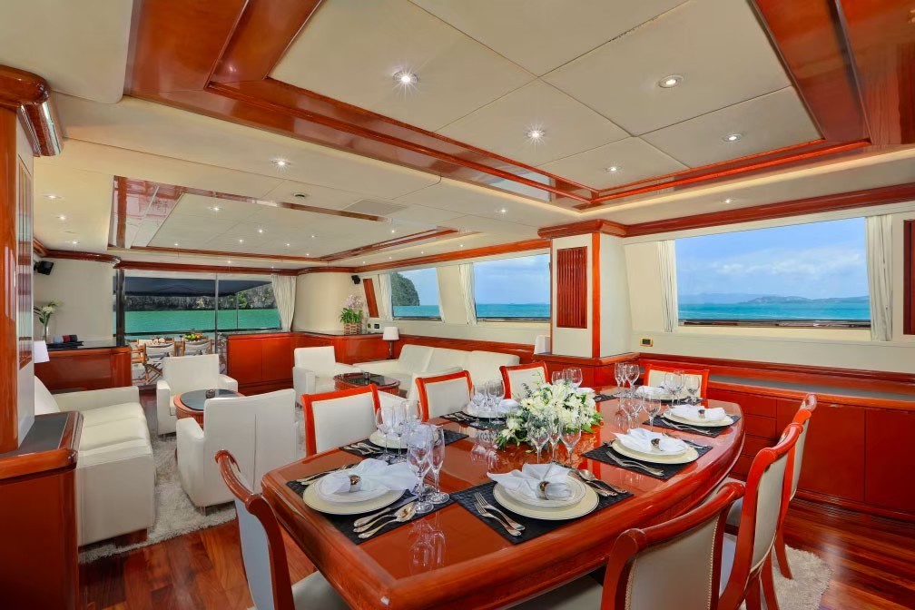 Our luxury motor yacht is capable of a comfortable cruising speed of 17 knots. Cruising in upmost comfort and explore the unparalleled beauty of the Andaman Sea. Her top speed is 25 knots and her power comes from two 2280.0hp MTU 12V396TE94 diesel engines.