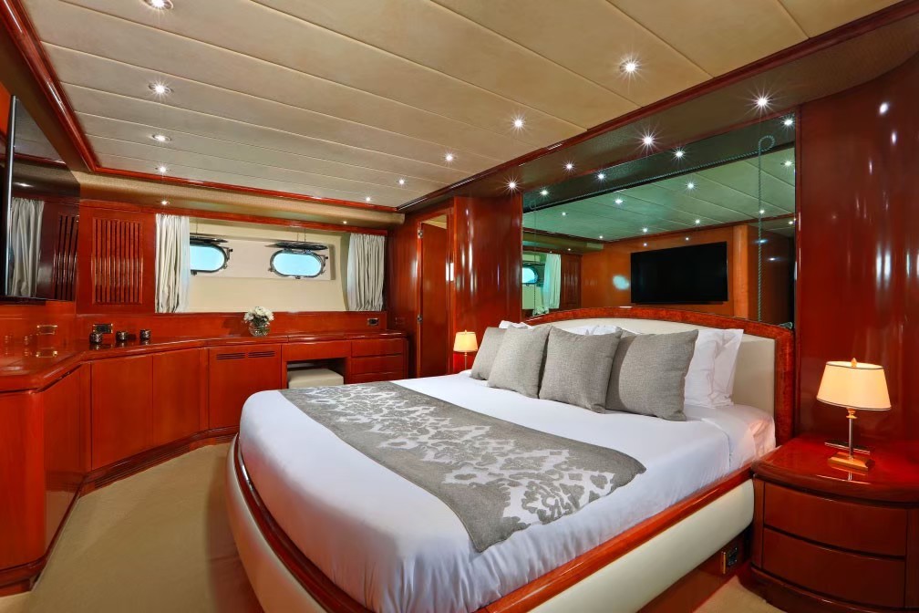 Launched in 2002 and refitted in 2019, this luxury Falcon Yacht is a powerful classic beauty and has an elegant interior, tastefully decorated, with the addition of state of the art electronics and updated features like a full size Jacuzzi.