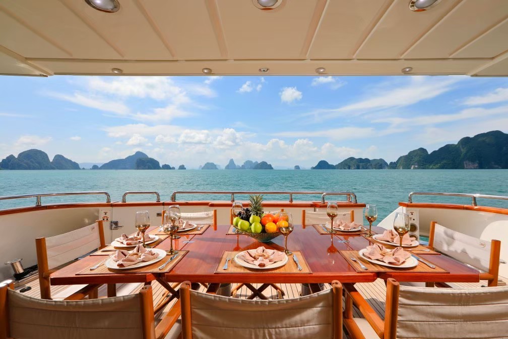 Our luxury motor yacht is capable of a comfortable cruising speed of 17 knots. Cruising in upmost comfort and explore the unparalleled beauty of the Andaman Sea. Her top speed is 25 knots and her power comes from two 2280.0hp MTU 12V396TE94 diesel engines.